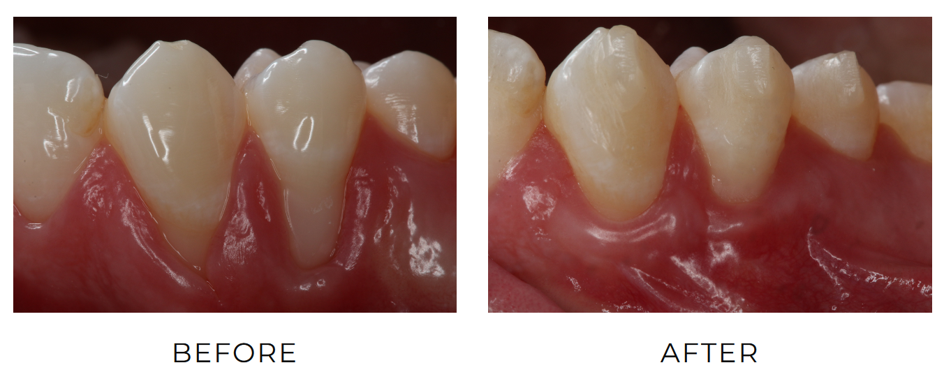 Depending on your need, treatment can include scaling and root planing to remove bacteria below the gums, localized medication, bite adjustments, and ongoing periodontal maintenance visits. When the gums recede enough to expose the roots or the tissue thins out, gum grafting may be recommended to strengthen and protect the area. A small graft is positioned and secured where the tissue has receded, and as it heals, it bonds with the natural gums, helping to restore coverage, reduce sensitivity, and support a healthier smile.